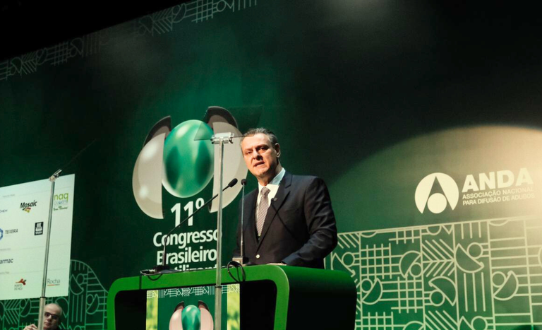 Nesta terça-feira (27), o ministro da Agricultura e Pecuária, Carlos Fávaro, participou da abertura do 11º Congresso Brasileiro de Fertilizantes, promovido pela Associação Nacional para