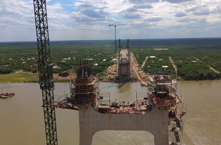 Cravada dentro do Pantanal Sul-mato-grossense, a porta de entrada da Rota Bioceânica avança sobre o rio Paraguai. A obra da ponte binacional, entre Porto Murtinho