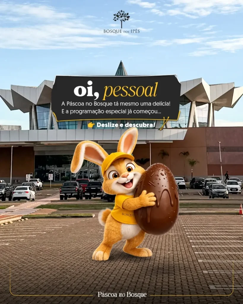 O Shopping Bosque dos Ipês realiza uma programação especial de Páscoa voltada ao público infantil e às famílias, com atividades gratuitas entre os dias 28 de março e 5 de abril.